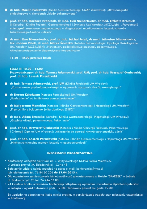 Konferencja adresowana była do lekarzy podstawowej opieki zdrowotnej, internistów i gastroenterologów z terenu Zagłębia Miedziowego.