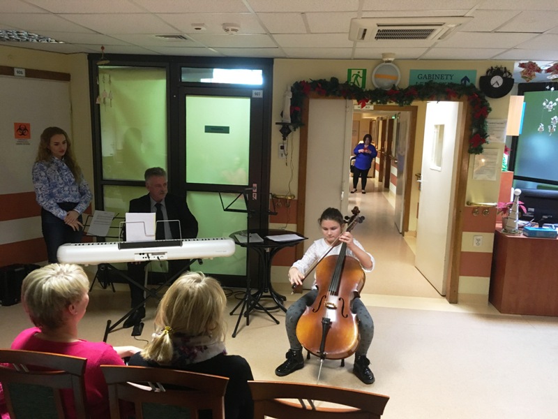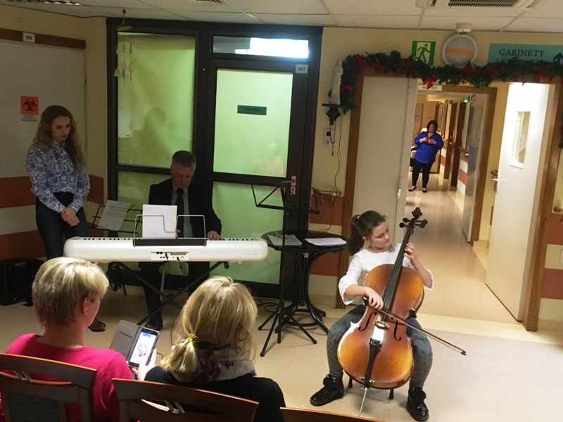 24 stycznia 2019r. na Oddziale Onkologicznym odbył się koncert noworoczny. Artyści przyjechali z Państwowej Szkoły Muzycznej I stopnia w Lubinie. 7 Nauczycieli oraz 8 Dzieci przygotowało dla Pacjentów Oddziału dzieła, z zakresu klasyki oraz rozrywki, na flet i klarnet, akordeon, pianino, wiolonczelę oraz gitarę. Uczniowie pod kierunkiem swoich Opiekunów wykonali utwory solowe oraz utwory z towarzyszeniem fortepianu.