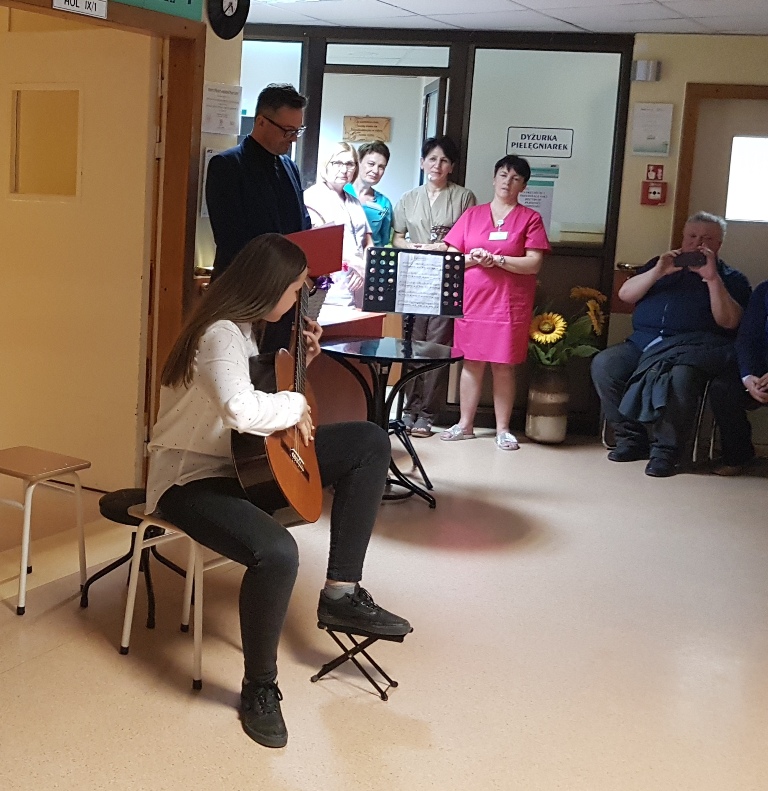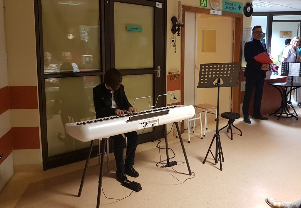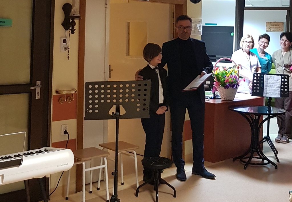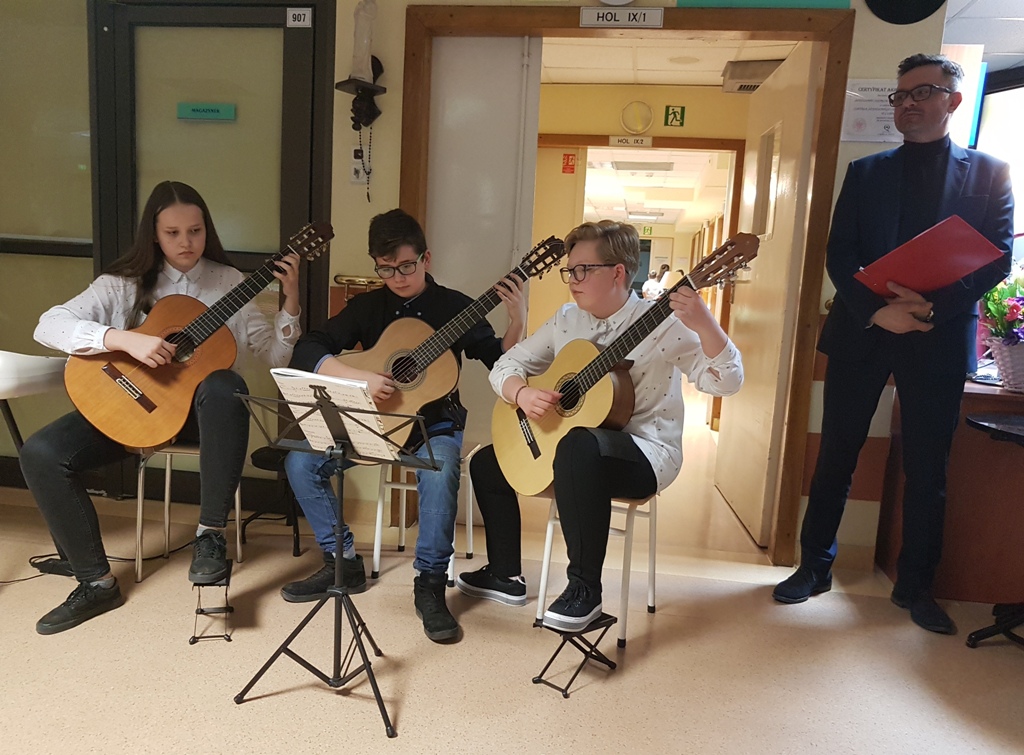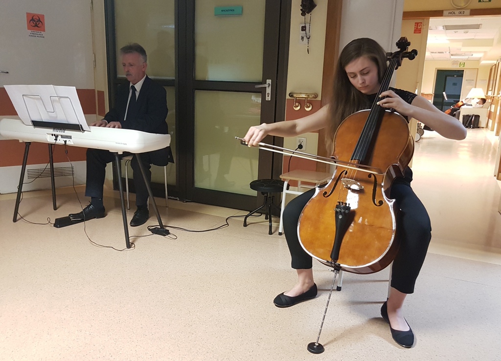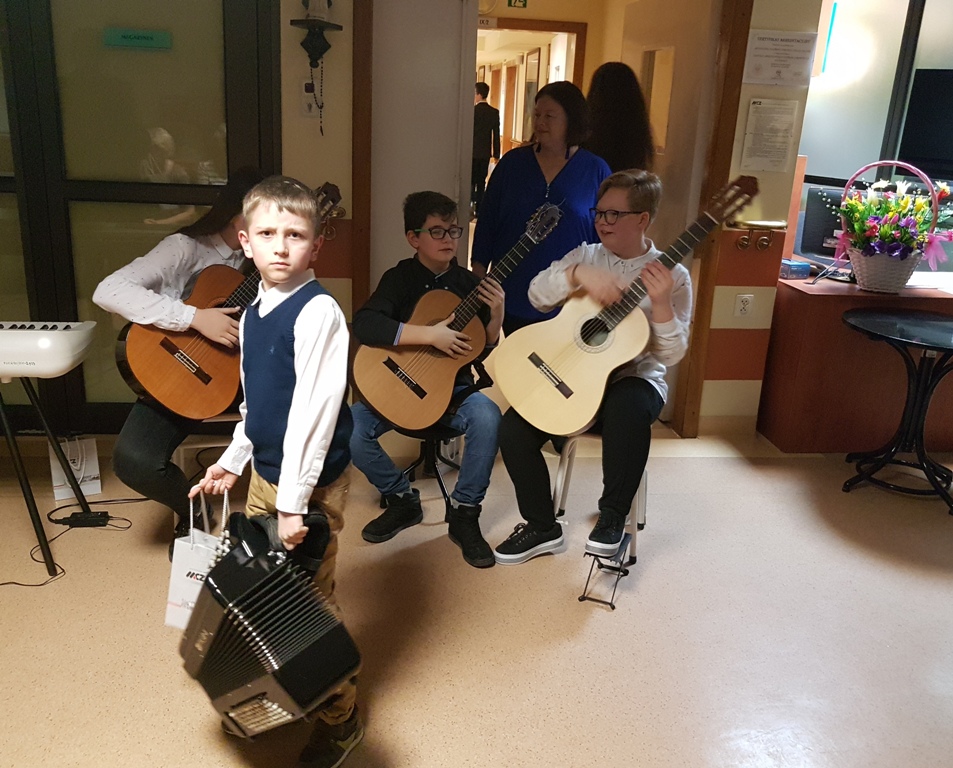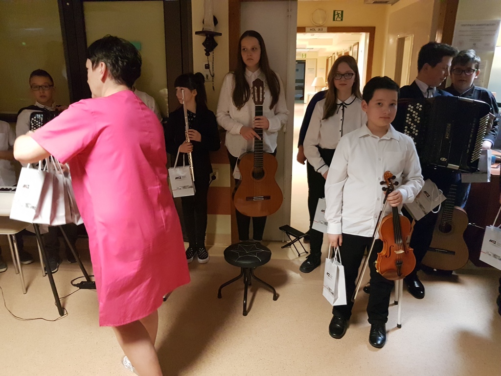 4 kwietnia 2019r. na Oddziale Onkologicznym zagościli ponownie Nauczyciele i Uczniowie Państwowej Szkoły Muzycznej I stopnia w Lubinie. Wystąpili z koncertem, na który złożyły się utwory różnego gatunku, wykonane na: skrzypcach, klarnecie, flecie, wiolonczeli, akordeonie, pianinie oraz gitarze. Każdy z widzów znalazł zatem coś dla siebie. Było wile wzruszeń, radości i oczywiście oklasków.
