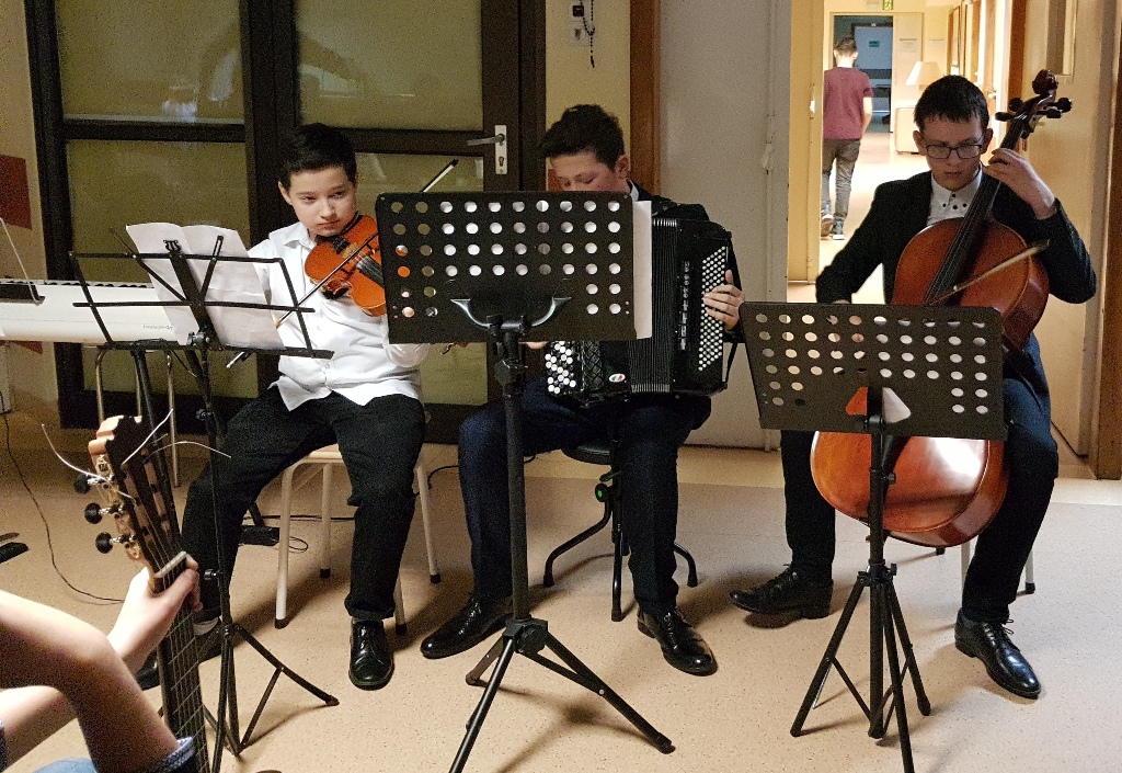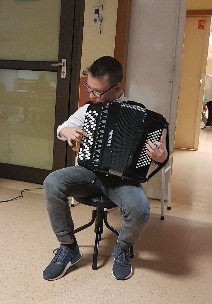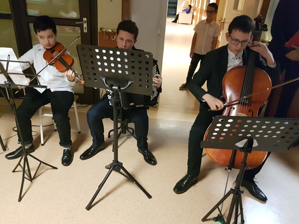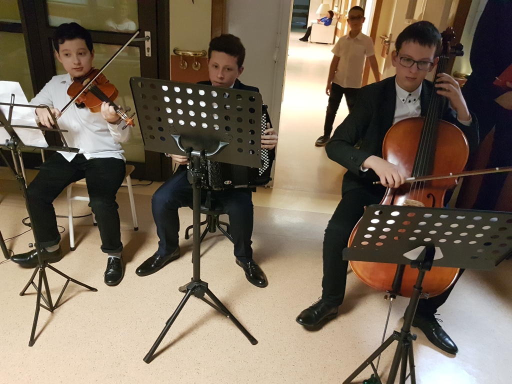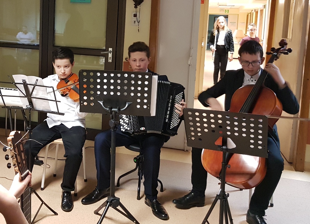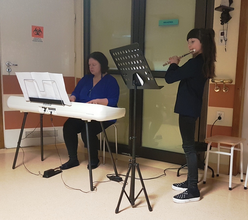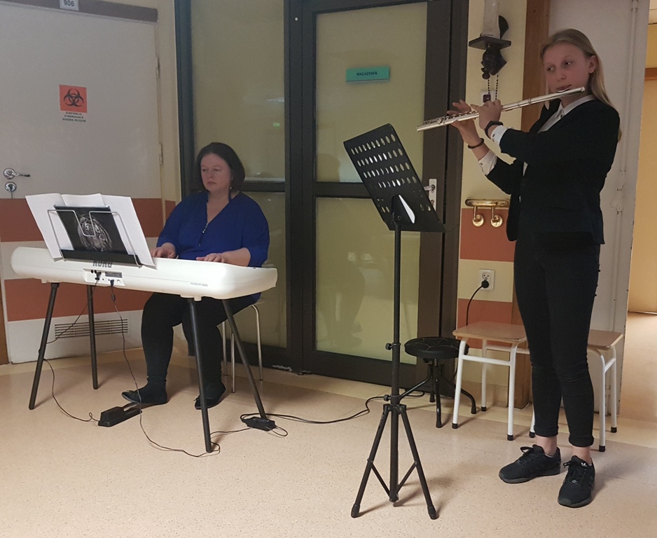 4 kwietnia 2019r. na Oddziale Onkologicznym zagościli ponownie Nauczyciele i Uczniowie Państwowej Szkoły Muzycznej I stopnia w Lubinie. Wystąpili z koncertem, na który złożyły się utwory różnego gatunku, wykonane na: skrzypcach, klarnecie, flecie, wiolonczeli, akordeonie, pianinie oraz gitarze. Każdy z widzów znalazł zatem coś dla siebie. Było wile wzruszeń, radości i oczywiście oklasków.