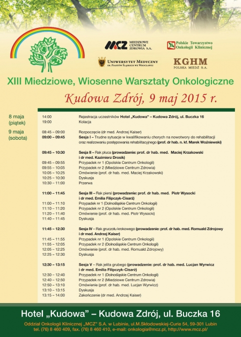 W dniach 8-9 maja 2015 r. w Kudowie Zdroju, po raz trzynasty, odbyły się Miedziowe Wiosenne Warsztaty Onkologiczne