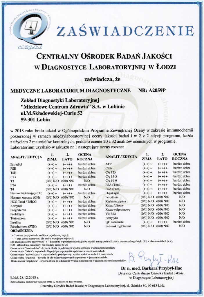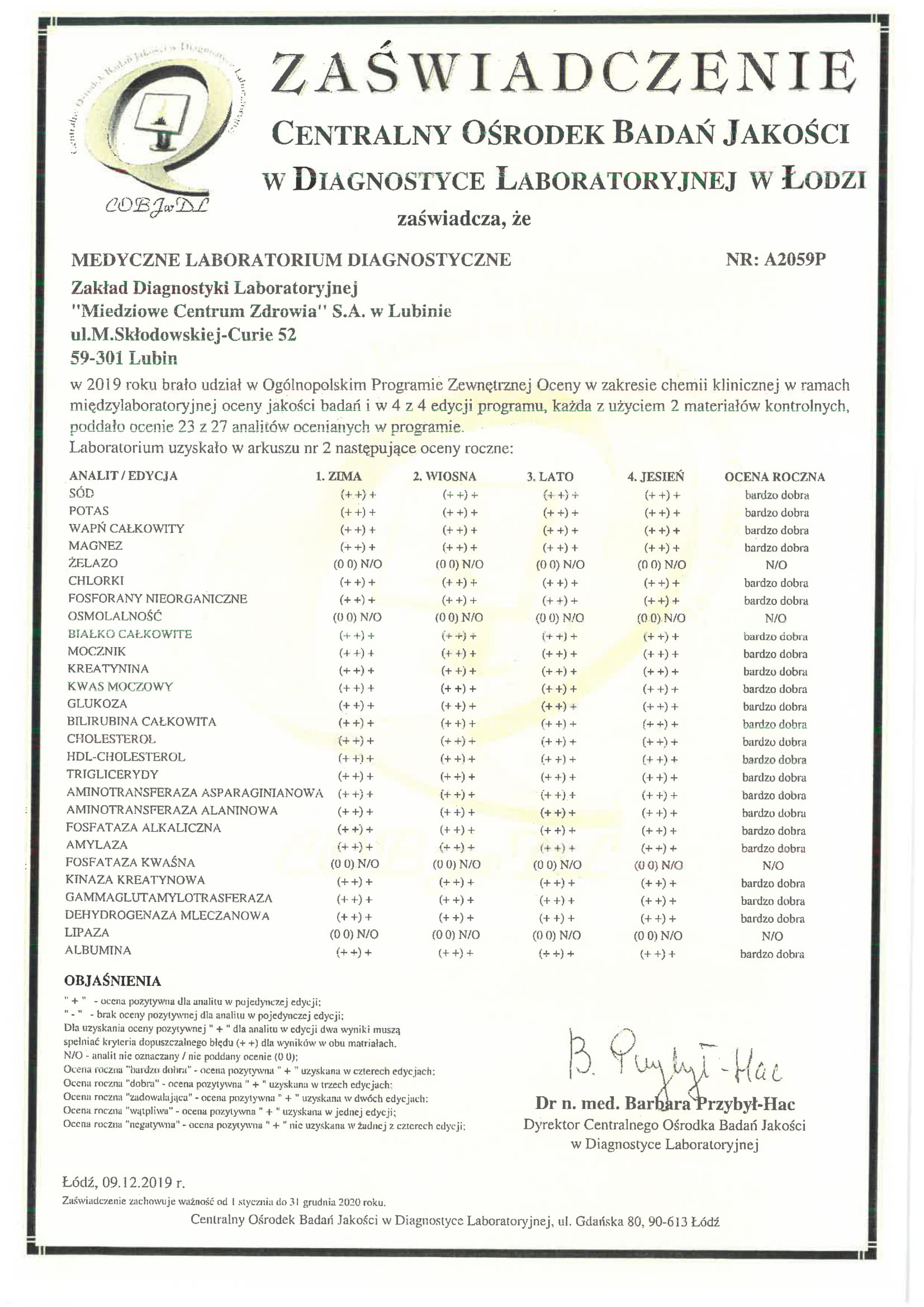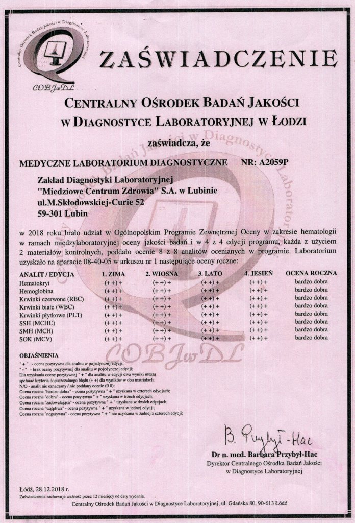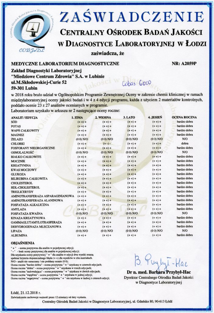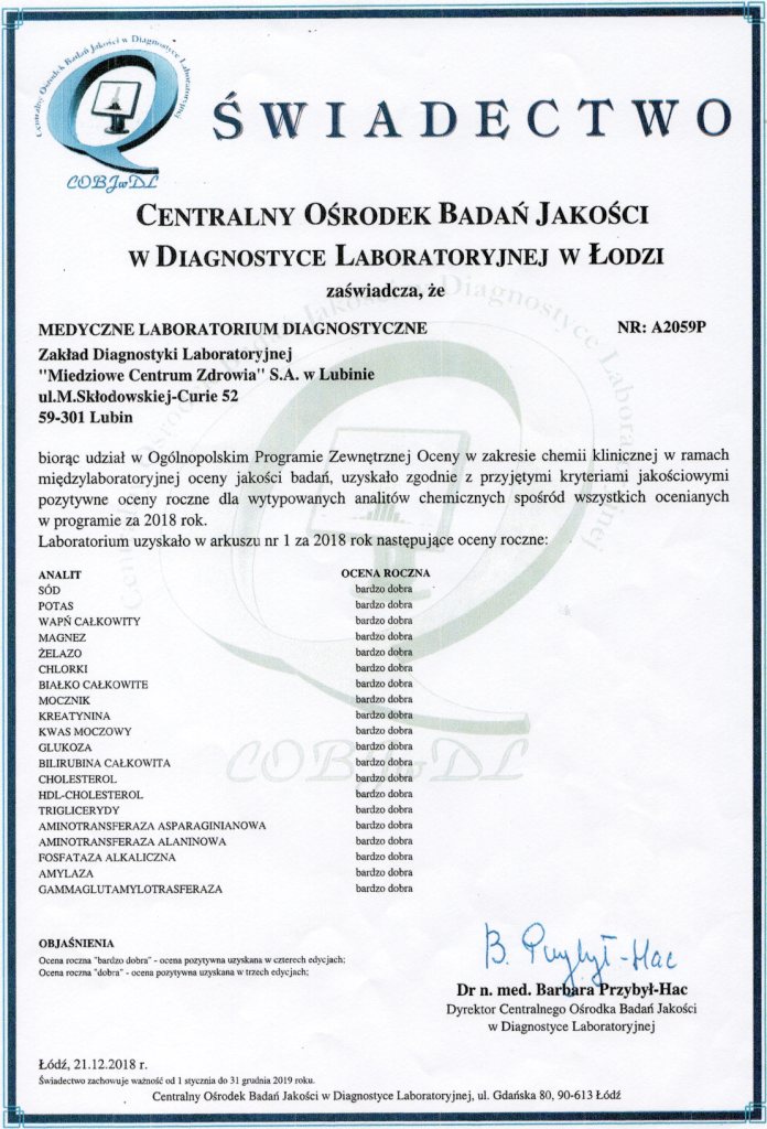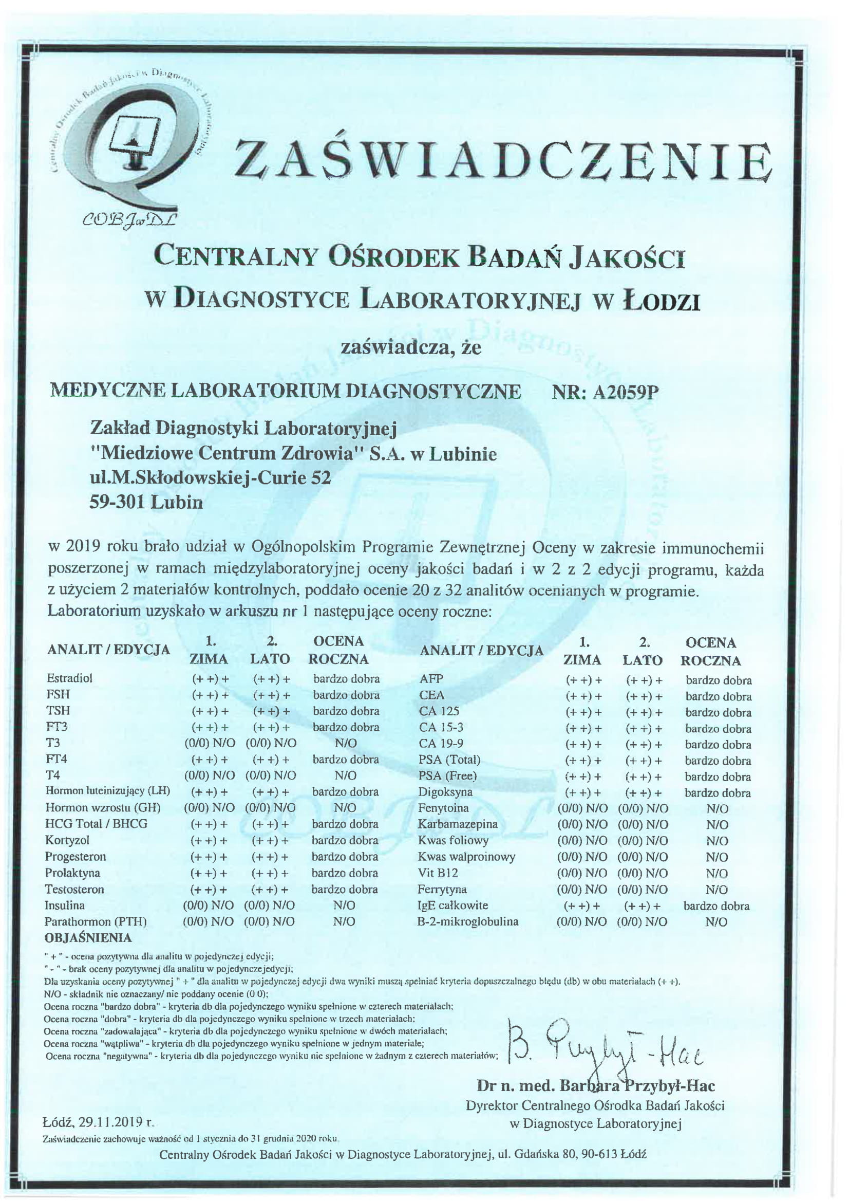 Zakład Diagnostyki Laboratoryjnej "MCZ" S.A. w Lubinie dzięki wieloletniej dbałości o jakość badań zdobył zaufanie pacjentów i lekarzy aktualnie dysponuje zespołem doświadczonych specjalistów analityki medycznej, który w wykonywaniu większości analiz