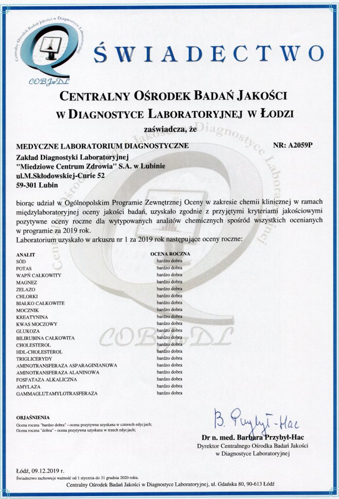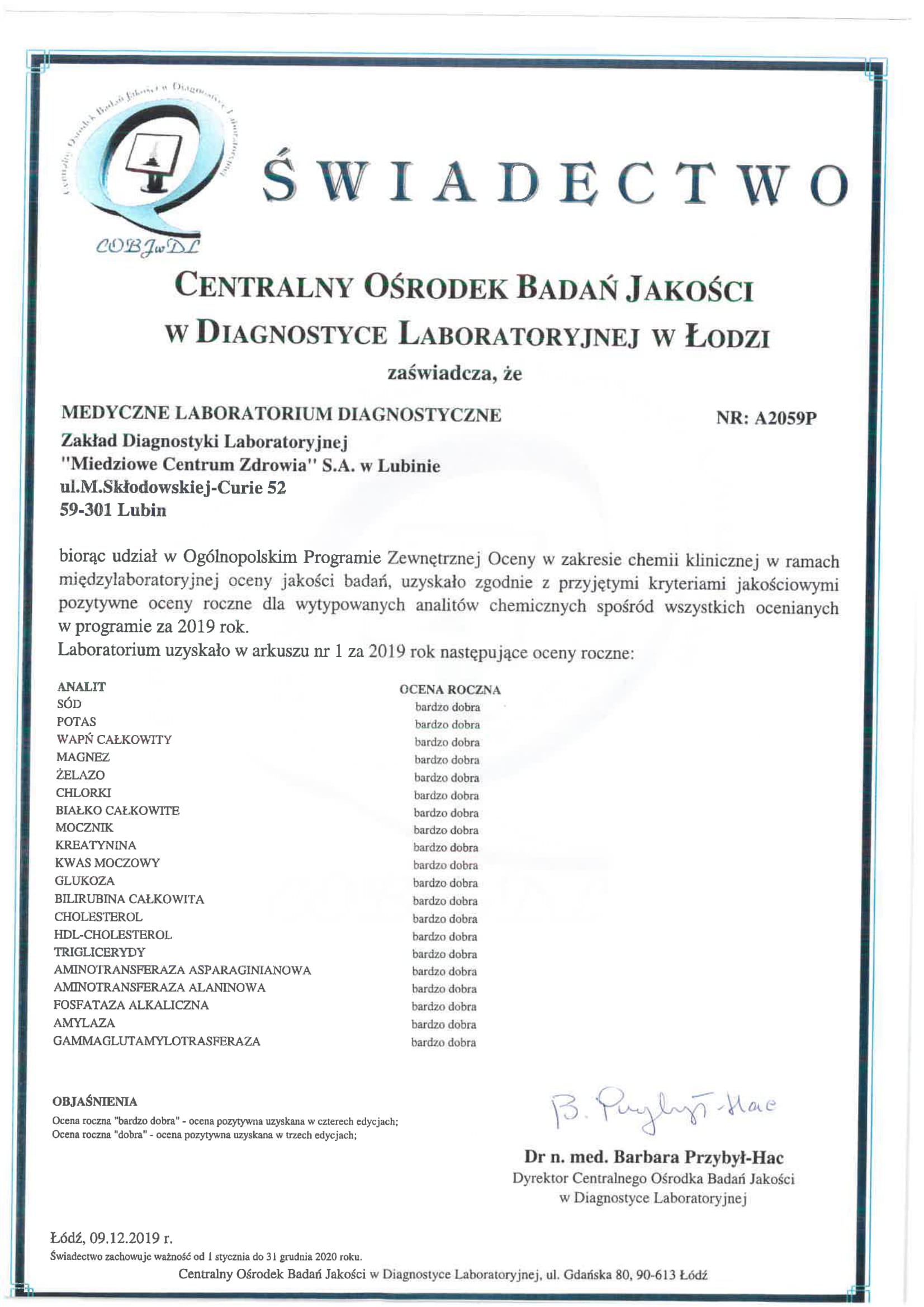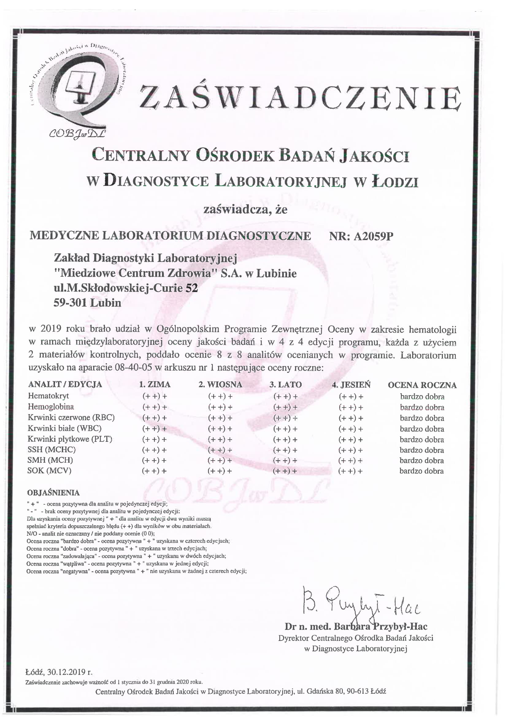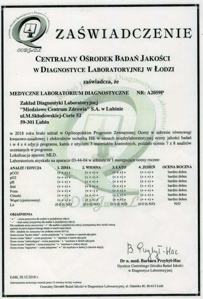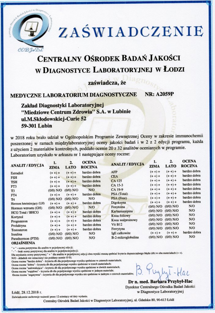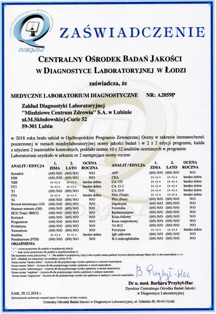 Zakład Diagnostyki Laboratoryjnej "MCZ" S.A. w Lubinie dzięki wieloletniej dbałości o jakość badań zdobył zaufanie pacjentów i lekarzy aktualnie dysponuje zespołem doświadczonych specjalistów analityki medycznej, który w wykonywaniu większości analiz
