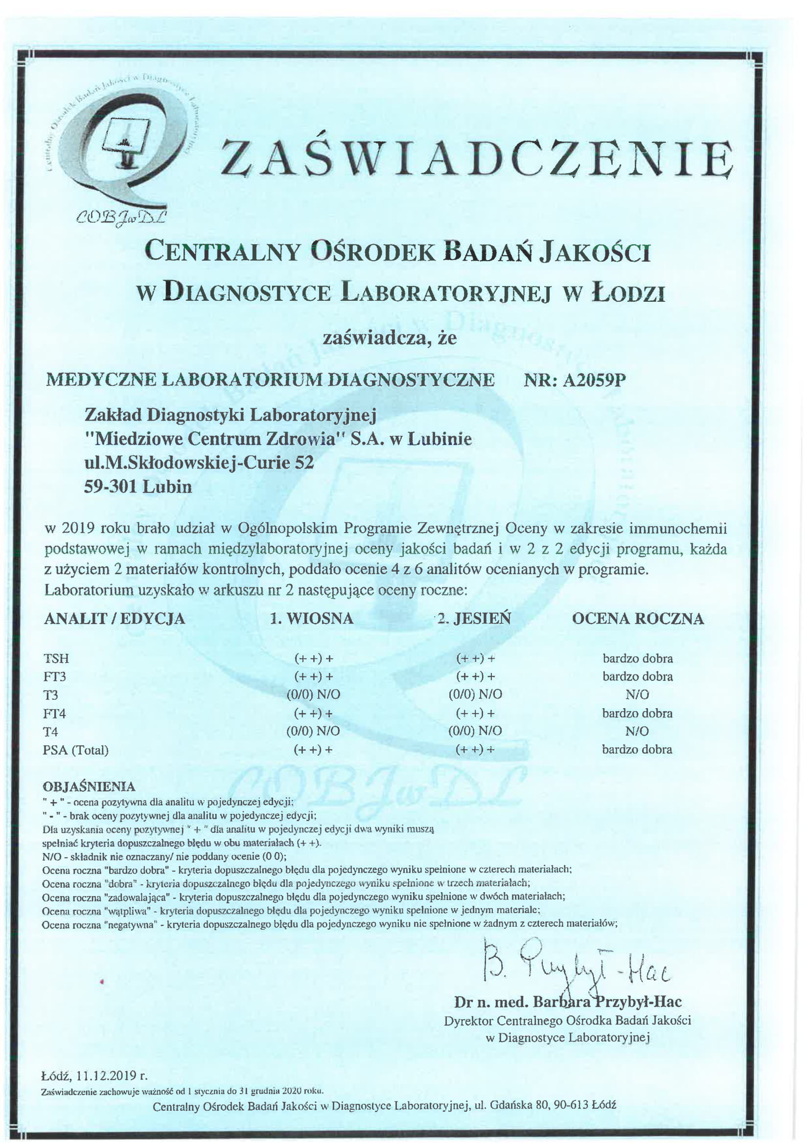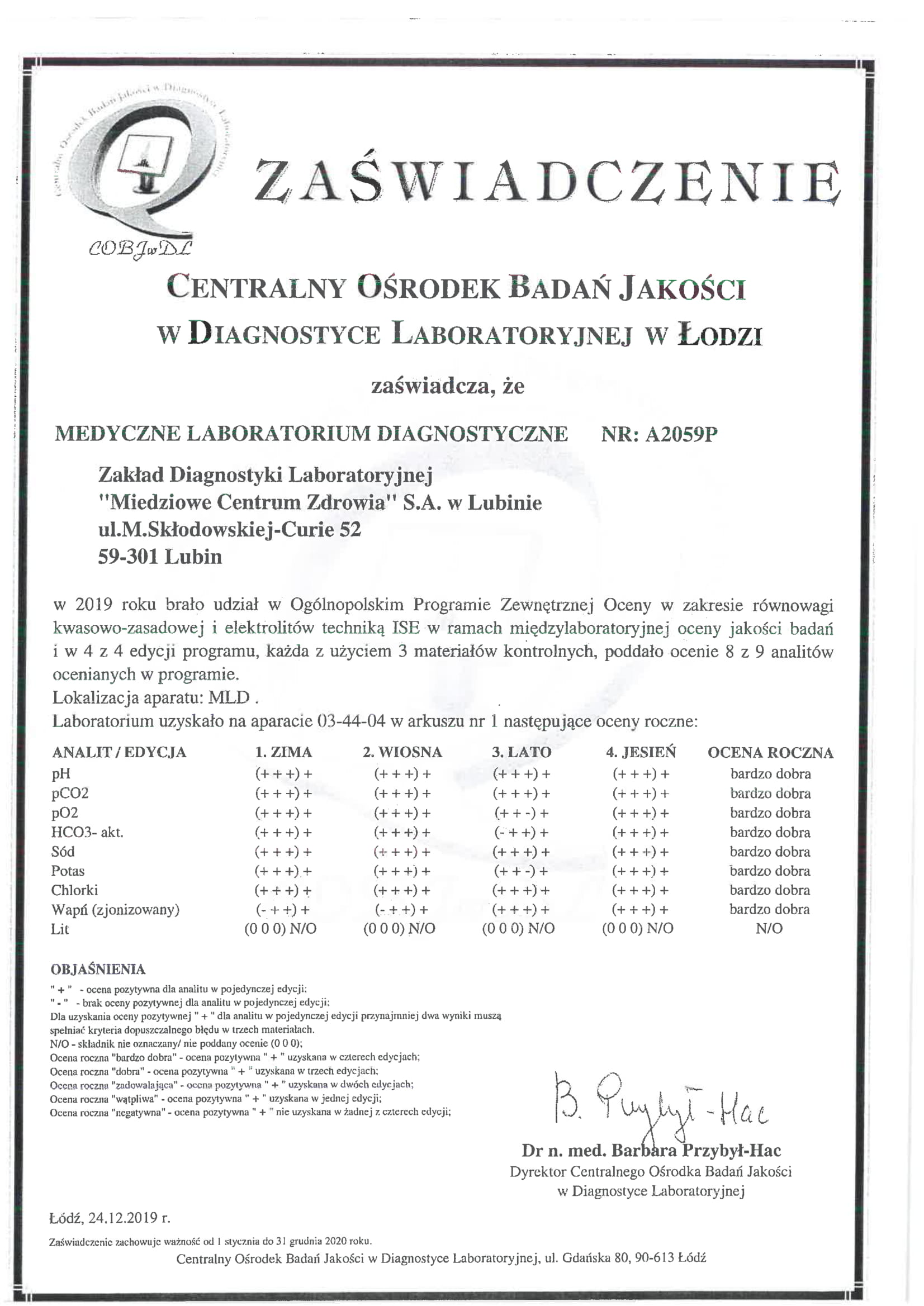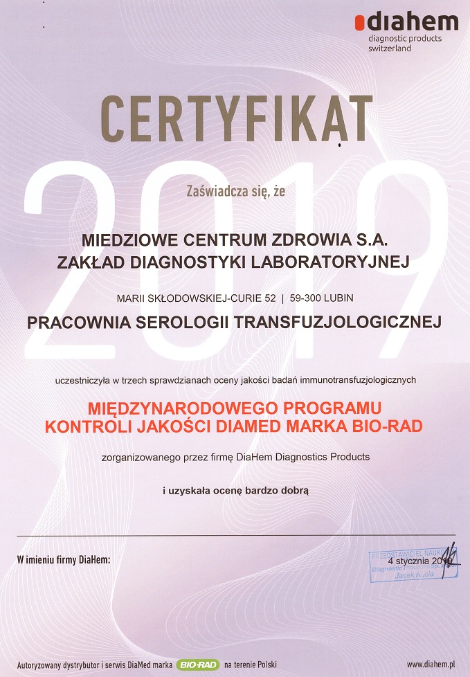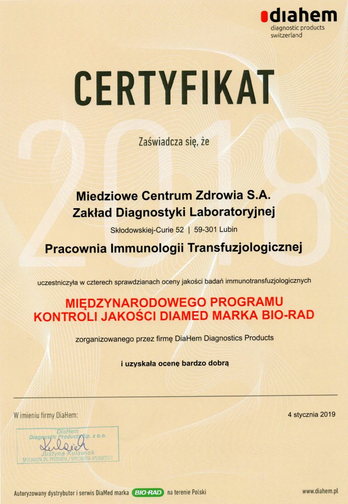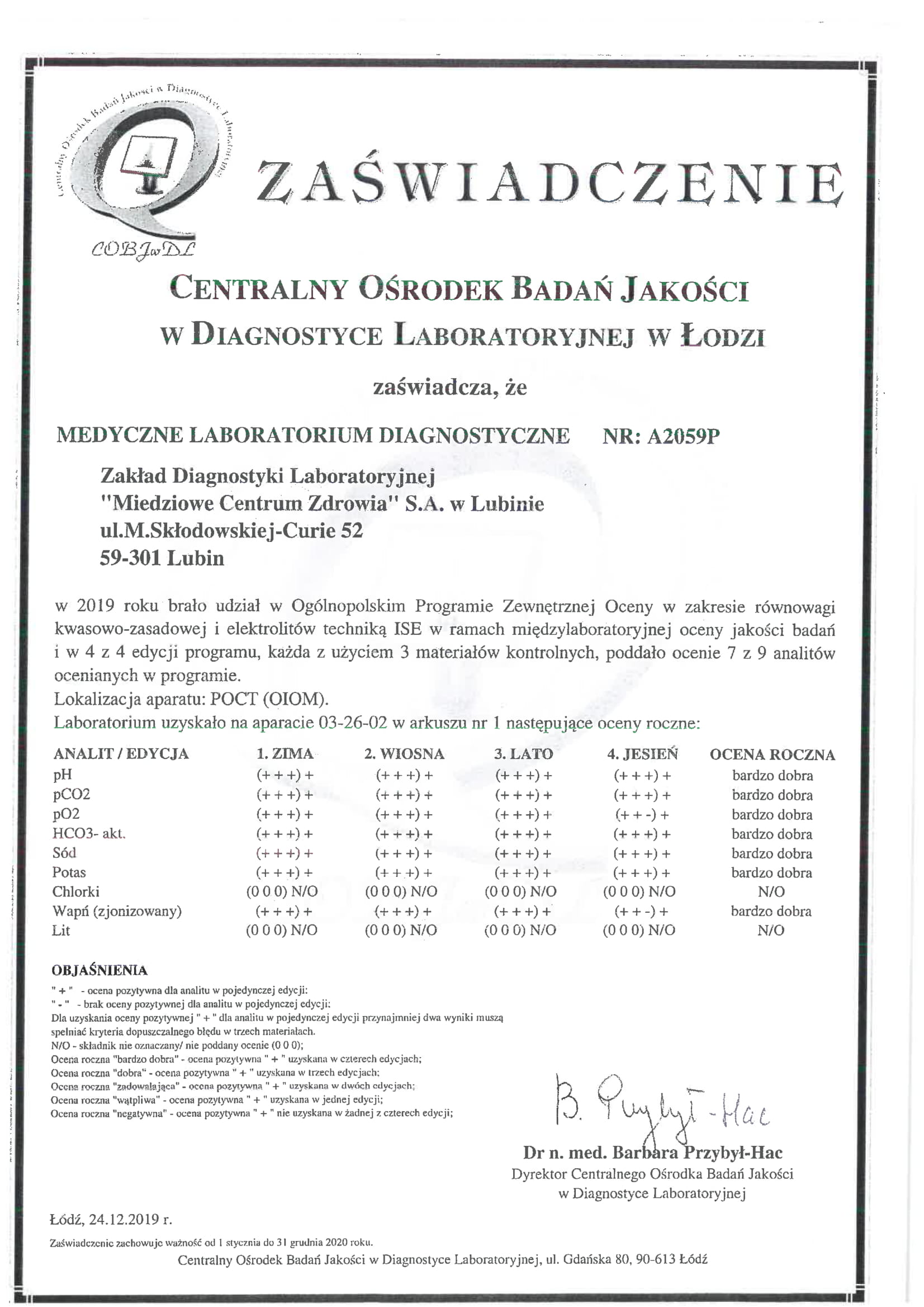 Zakład Diagnostyki Laboratoryjnej "MCZ" S.A. w Lubinie dzięki wieloletniej dbałości o jakość badań zdobył zaufanie pacjentów i lekarzy aktualnie dysponuje zespołem doświadczonych specjalistów analityki medycznej, który w wykonywaniu większości analiz